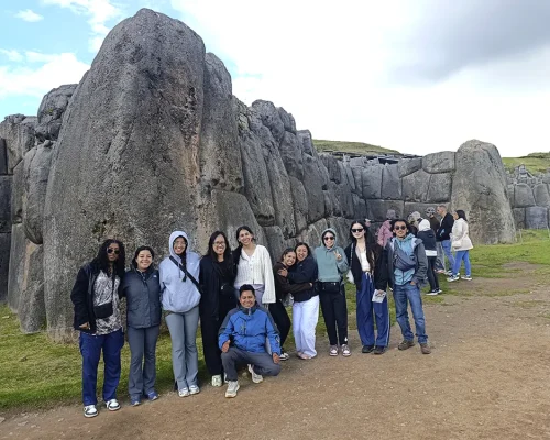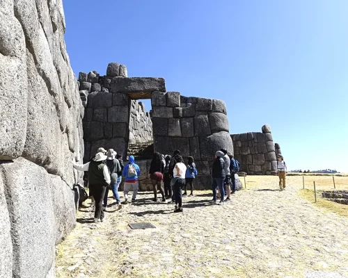 Next, we’ll stroll down Avenida El Sol to board our comfortable bus for a scenic 25-minute drive up into the surrounding hills. Your first archaeological stop is Sacsayhuamán, renowned for its massive, precisely fitted stone walls—some blocks weigh over 200 tons! Listen to our guide’s insights, then take time to wander through the terraces at your own pace.