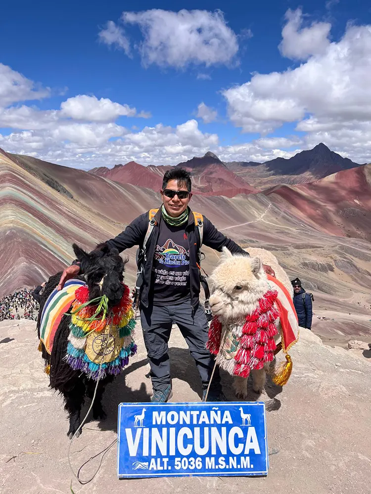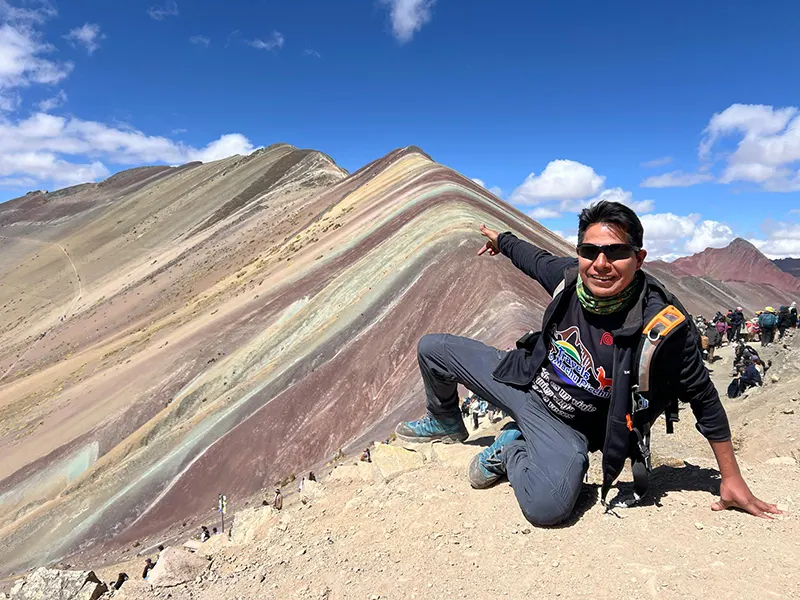 Na chegada, aproveite um café da manhã embalado enquanto nosso guia te informa sobre os protocolos de segurança, as condições da trilha e as maravilhas geológicas que te aguardam. Em seguida, partirá para uma ascensão constante de 2 horas até o topo da icônica Montanha de Cores (5.020 m). No caminho, maravilhe-se com as vibrantes veios minerais nas encostas e o imponente pico de Ausangate, cujas cúpulas nevadas oferecem um fundo dramático.