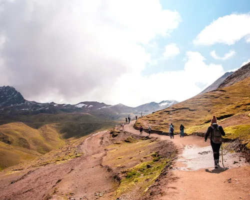 Upon arrival, enjoy unobstructed views before crowds arrive. Your guide will explain the mineral composition responsible for each color band. When you’re ready, descend for one hour back to the trailhead. Here you’ll say goodbye to your trekking team and continue with your dedicated Rainbow Mountain Trek guide.
