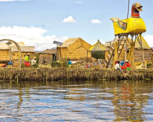 Pickup between 7:30 and 8:00 am brings you to the lakeside port for a boat ride to the floating Uros Islands. Explore these unique reed-built homes and learn how the Uros community thrives atop the water. Next, continue by boat to Amantani Island, where you’ll be hosted by a local family in simple yet welcoming accommodations. Participate in a traditional lunch, enjoy a hands-on weaving demonstration, then hike to the Pachamama or Pachatata temples at sunset and join in an evening celebration with the islanders.